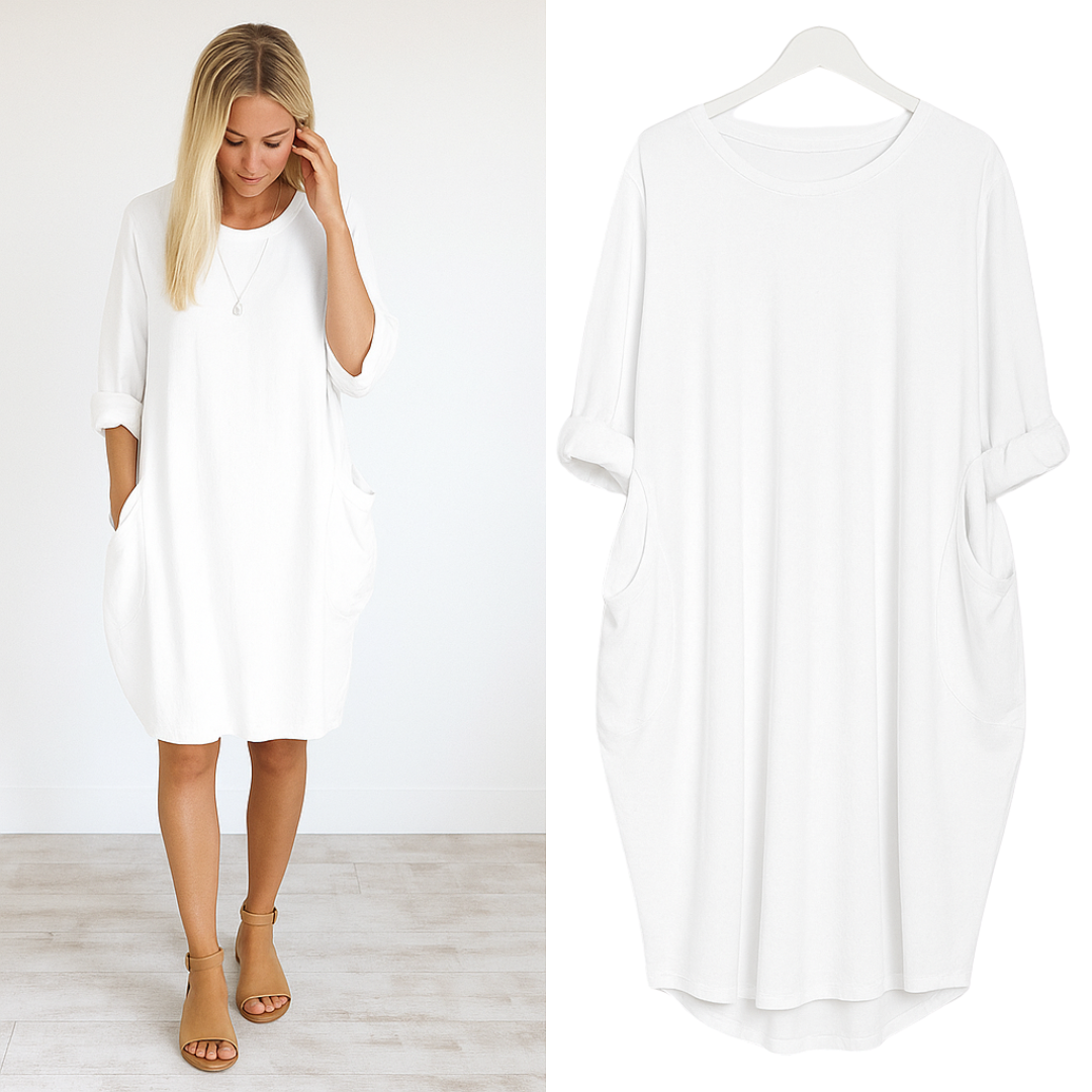 La robe raffinée Ellen™ allie élégance intemporelle et confort de port ultime. Grâce à sa coupe ample et à son tissu aéré, cette robe crée une belle silhouette flatteuse pour chaque silhouette. Avec ses manches longues et ses poches profondes et pratiques, Luna™ est parfait pour les femmes qui souhaitent allier style, confort et fonctionnalité.